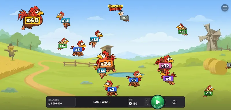 Every bird on the screen displays a specific multiplier value. A unique feature of this game is that if you miss a shot at a particular chicken, its individual multiplier value increases by a fixed bonus amount. This creates a rewarding loop where persistent targeting pays off.